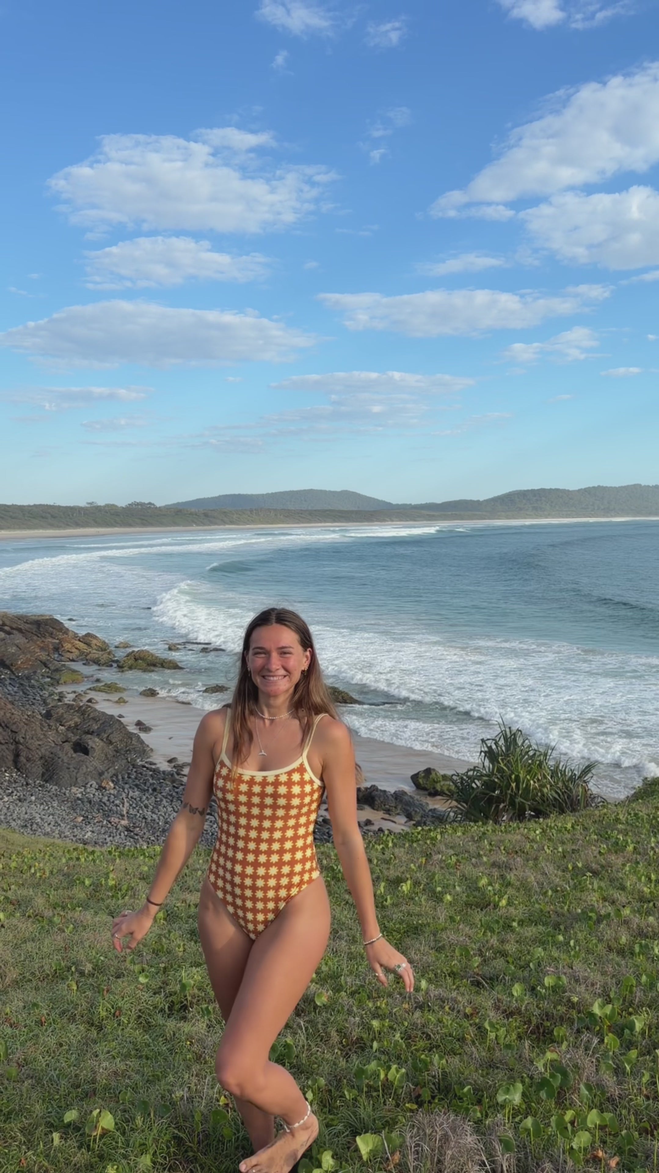 Meet the Harper One Piece, your go-to for effortless support and timeless style. Designed in our rich Chocolate shade with dreamy butter-yellow piping, this one piece is all about flattering lines and feel-good comfort. Featuring adjustable straps and a tie-up back so you can customise the fit just how you like it, Harper moves with you from salty swims to slow beach days.