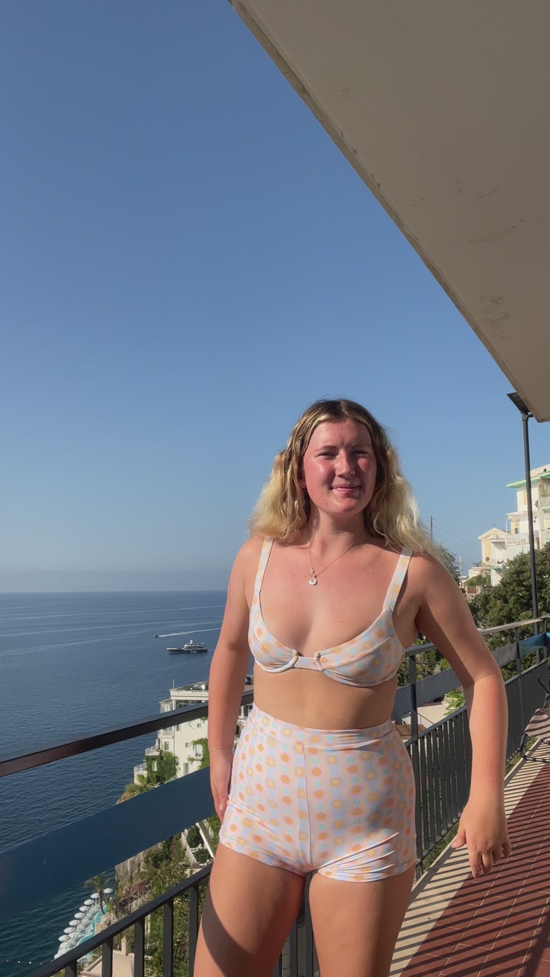 Our sustainable swim Rosie Bralette is back and better than ever and is the perfect everyday bikini top, whether you’re going for a surf or a tan on the beach it’s an all-rounder ideal for any situation. Designed for extra comfort with underwire, extra-thick straps which are also adjustable to suit your needs. No annoying ties and digging in with our Rosie Bralette as it features a clip-in back with beautiful gold-plated accessories. With a few new adjustments, featuring plastic underwire rather than metal meaning no digging in. Our Sundew prints seen on our Rosie Bralette is hand-drawn and exclusive to us so you can’t find it anywhere else which we think is pretty cool.